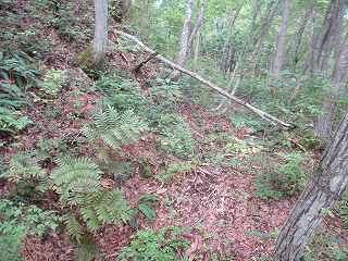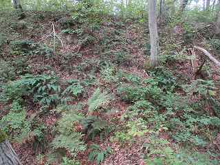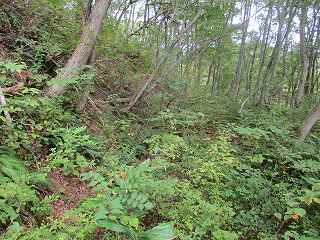 障子堀と言えば北条氏の専売特許のように思われているのだが、この城にも明確な障子堀が存在している。ただし、夏場はヤブに埋もれており、写真撮影はうまくいかない。