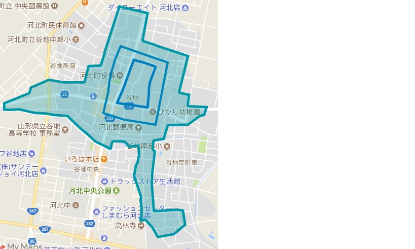 その後、山形市にお住まいのAさんから、右の図は、実際の範囲よりも狭くなっているのではないかとのご指摘をいただいた。指摘された内容は以下の通り。