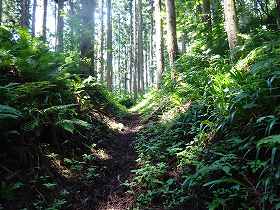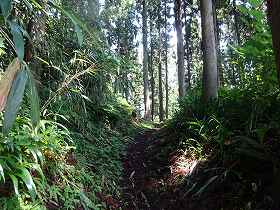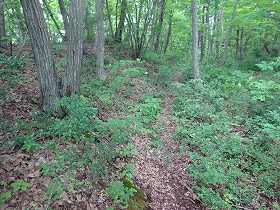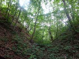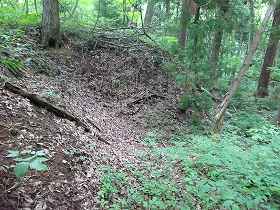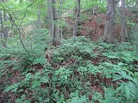 | さらに上に登っていくと主郭2号空堀という名の横堀がある。 | 山頂の少し手前にあった虎口状の部分。 |
