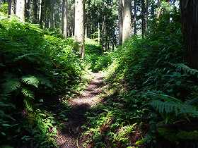 案内板の立つところから本丸まではしっかりとした遊歩道が付けられており、夏場でも安心して進んでいける。ただし、遊歩道以外の部分はヤブのままの状態になっているため、遊歩道から外れて郭内部に入っていくことは夏場ではほとんど不可能であった。