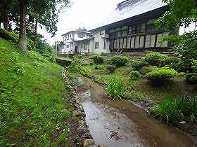 川西町大塚の集落の北側の民家が寺嶋館の跡である。