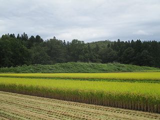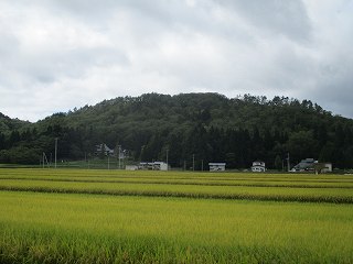 すると、水田地帯の奥に城の土塁と思われるような土手が見えている。あれが飛尻坂館跡なのでは?