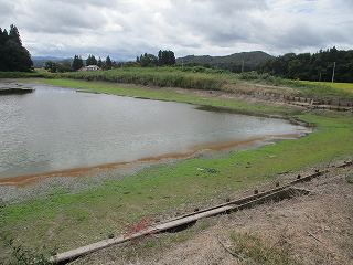 | 北西側から遠望する土塁。 | 内部は池になってしまっている。 |