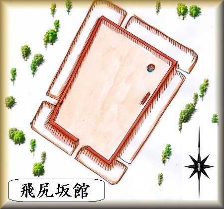 川西町下奥戸1279番地の南東方向にある、土手を巡らせた池が飛尻坂館の跡であったと思われる。