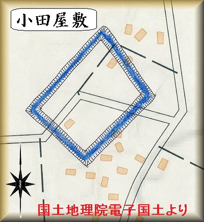 下平柳の熊野堂の南西100mほどの民家一帯が小田屋敷の跡である。