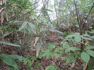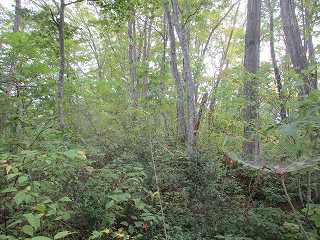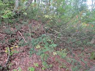 比高30mほど直登すると尾根上に出た。実際の城址はここから北西側の奥にあるので、この尾根上をけっこう長く歩いて行く感じである。