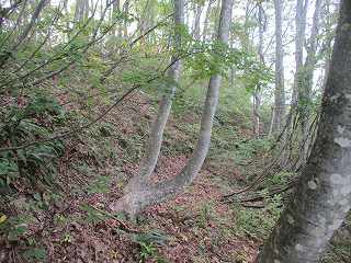 | 1郭下の腰曲輪。 | 切岸。もうどこの部分だったか分からない。 |