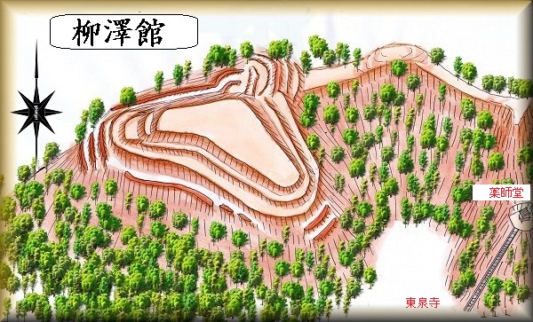 柳澤館は、まずまずの遺構を残している城館ではあるが、何しろヤブがひどすぎる。鳥瞰図も半分は想像に頼ったもので、本当にこのような城館なのかどうか確信は持てない。