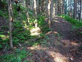 | 山頂までの間には段郭が多数見られる。 | 1郭南側の堀切。 |