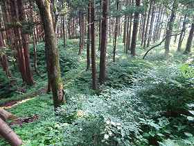 | 1郭内部。 | 1郭背後の堀切だが、ヤブでこの状態である。 |