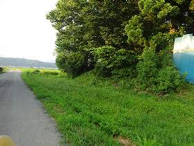 | 月楯小学校が曾楯の跡である。西側にのみ堀と土塁が残されている。南側から残る堀を見たところ。 | 同じ堀を北側から見たところ。 |