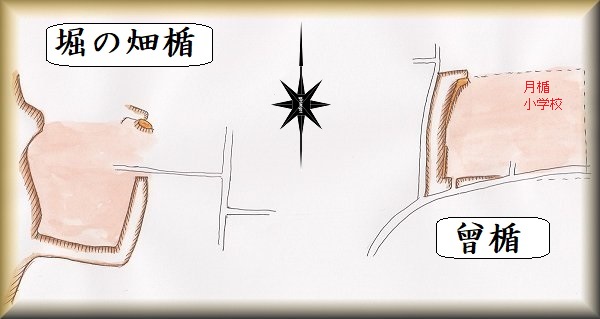 堀の畑楯は、曾楯の西方400mほどのところにある。比高5mほどの台地の西端で、現在は畑となっているが、堀跡の一部が残されている。