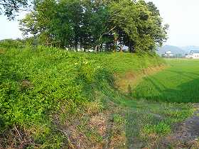 | 南方から見た要外楯。左奥に見えるのが小国城。 | 南側の城塁。 |
