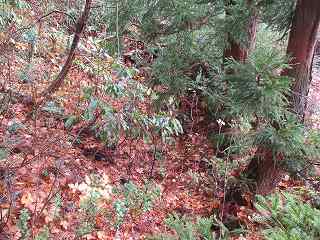 | 郭内部。ヤブでよく分からない。 | 2郭西側にある堀切。 |