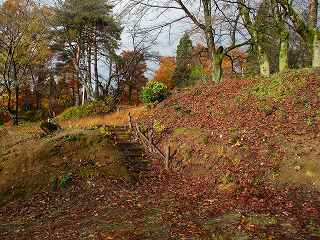 入ったところが公園となっている2郭である。その上に階段と城塁が見えている。