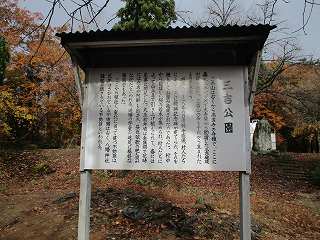 | 三吉公園の案内板。 | 1郭に建てられている日露戦争の慰霊碑。 |