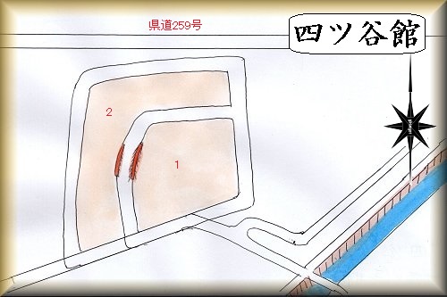 | 山館の2郭の城塁。 | 2郭から見た1郭。 |