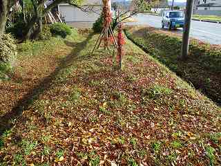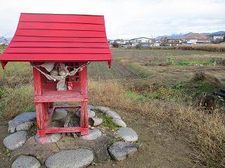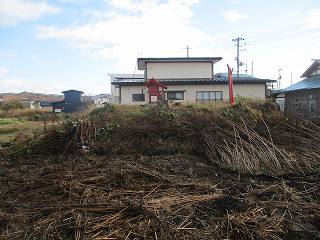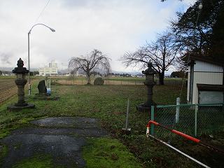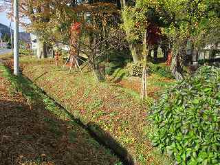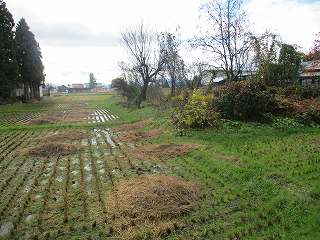 | 東側の堀跡。 | 北西側の堀跡付近。神社の跡のようで、ここに車を停めておくことができる。 |