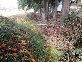 現在もご子孫のお宅となっているようだが、その入口には二重堀が明瞭に残されている。堀は西側にかけて続いて城塁ラインを確認できる。