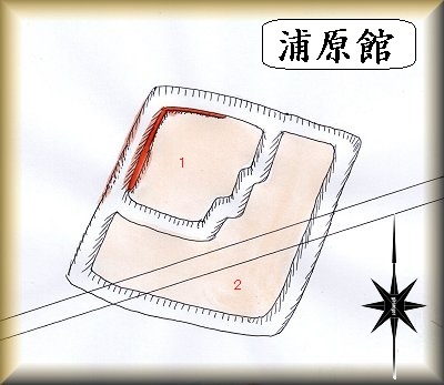 浦原館は、かつては2郭構造の城館であったと思われるが、耕作化や宅地化によって遺構の多くは失われてしまっている。