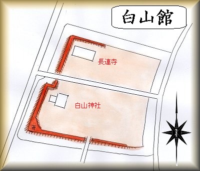 その名も舘町にある白山神社および長連寺が白山館の跡である。というわけで、この神社を目指して行けばよい。