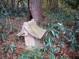 | 1郭の虎口。 | 土塁上に祭られている稲荷神社の祠。 |