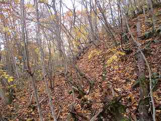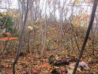 比高20mほどと、たいした高さはないのだが、周囲は急峻な土手状地形である。また、ヤブもひどい。
