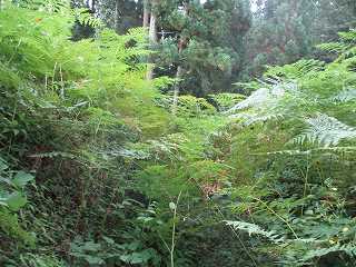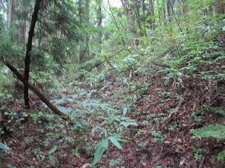 | 南端の墓地の入口。ここからアクセスしてみた。路肩が広く、駐車できるスペースもある。 | 竪堀が見えてきた。 |