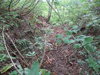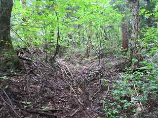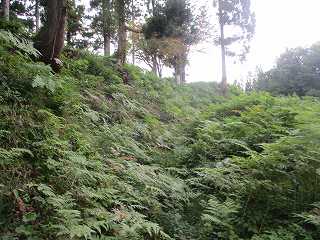 | 合計4,5本の竪堀が並行している。 | 竪堀の間の土塁部分。 |