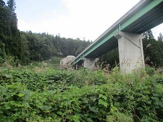 | 西側の山麓にも堀状の地形がみられる。 | 城址の中央部を山形自動車道が貫いている。 |