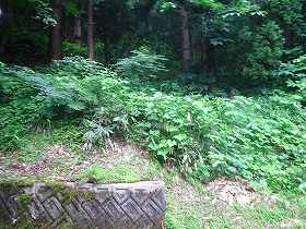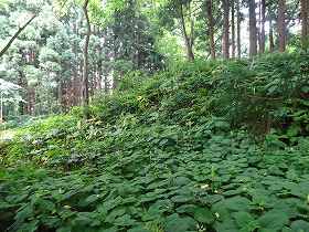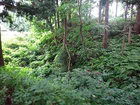 そこで、1郭に向おうとしたのであるが、切り通しになっている個所の周辺はかなりのヤブとなってしまっていた。今では城内を訪れる人もいないのであろう。少しのヤブなら突っ切っていけるのであるが、この日、東北地方にかなりの雨が降った日で、土砂降りになってしまっていた。さすがに土砂降りの中でのヤブ漕ぎは不可能である。というわけで、1郭内部の探索はあきらめた。