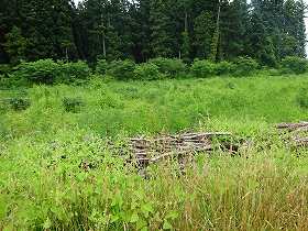 | 手前の堀。かなり深い。 | 小十郎楯の土塁。 |