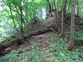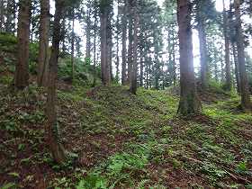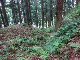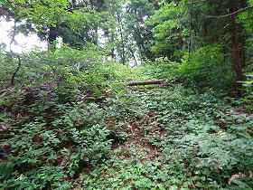 | 馬出し東側下の堀切。 | 南側の横堀と切岸。 |