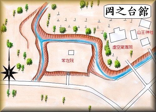 常在院は廃寺となっており、小さなお堂が残されているだけであるが、その入口は土手状になっていて、境内の周囲には小川の流れる谷戸部が囲んでいる。「岡之台」という地形そのものの立地である。