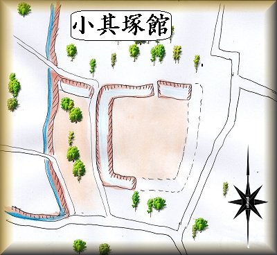 小其塚には地頭領主として宮崎弥七郎の名前が伝えられており、宮崎氏の館であった可能性がある。
