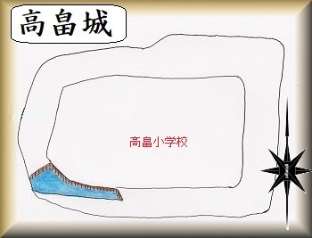 高畠小学校のある場所が高畠城の跡であり、地図には高畠陣屋跡と掲載されている。
