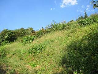 | 切岸と郭。 | 帯曲輪の切岸。 |