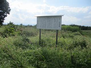 | 東側の虎口脇に建てられている案内板。 | 東側の堀跡。 |
