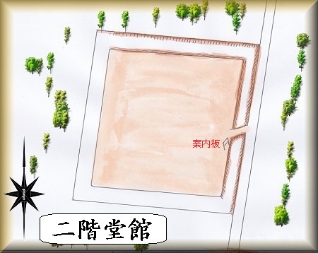 二階堂館はgooglemapにも掲載されているが、googlemapが示している場所が案内板の設置されている辺りである。