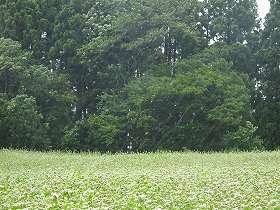 | 台地縁にある土塁。しかし、それほど高いものではない。 | 土塁を遠望したところ。 |
