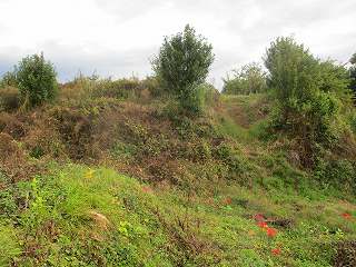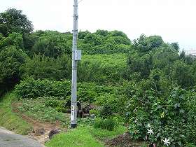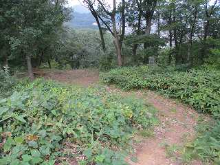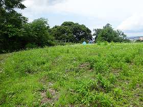| 入り口部分が削られているが、端の方から登って行ける。 | 城塁と腰曲輪。 |
