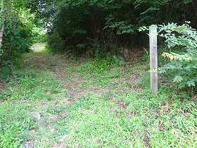 | 1郭内部。 | 登り口にある城址標柱。しかし、すでに字は読めなくなっており、何の標柱だか分からない状態である。 |