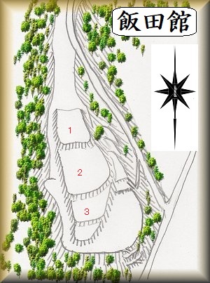 飯田城は成沢城のすぐ北方にあり、成沢城の前面を守るための出城のようなものであった。戦国期に飯田播磨守によって築かれたものだという。