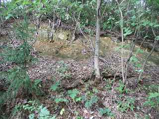 この尾根続きの部分を利用して、城内まで水路が引かれていたという。この水路がどこにあるのか確認できなかったが、もし残っていたとしたら、大変珍しく、貴重な遺構であると思う。