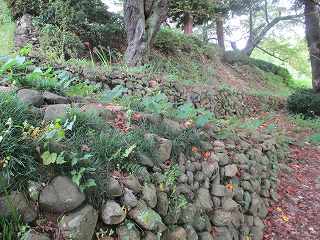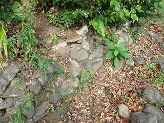 | 参道脇には石積みがあるのだが、遺構なのだろか。 | 東側の腰曲輪。 |