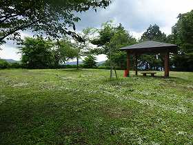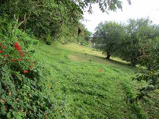 | 二ノ丸手前の土塁。 | 二ノ丸から下には何段もの平場が続いている。 |
