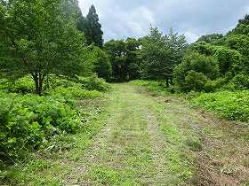 案内板の所から坂道が付けられているのでこれを登って行く。登り始めてすぐに東側の腰曲輪が見えてくる。ここは畑として利用されている。