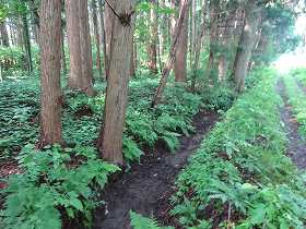 | 北西の堀。というか、実際は溝である。 | 1郭周囲の土塁と堀。こちらも小規模である。 |