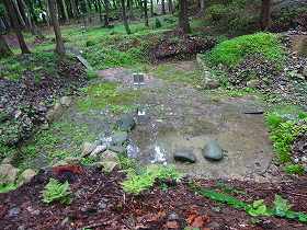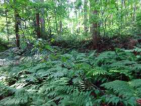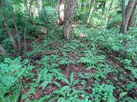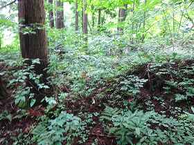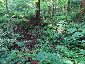 ということで土塁が残っていないかと見てみたのだが、よく分からなかった。現状では、土塁も失われてしまっているのかもしれない。