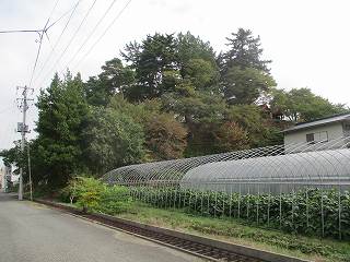 神社の背後には一段高い地形がそびえて見えているが、この上は自然地形となっている。東西に長く延びているのだが、郭と言えるような削平地ではない。
